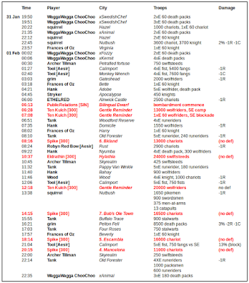 Note: typically army sizes and home cities are sensitive information. I mailed Tool prior to posting this section, and he was able to provide a full XML battle report that showed all our forces. There is no information posted in this section that the enemy hasn't already seen in full detail.