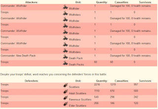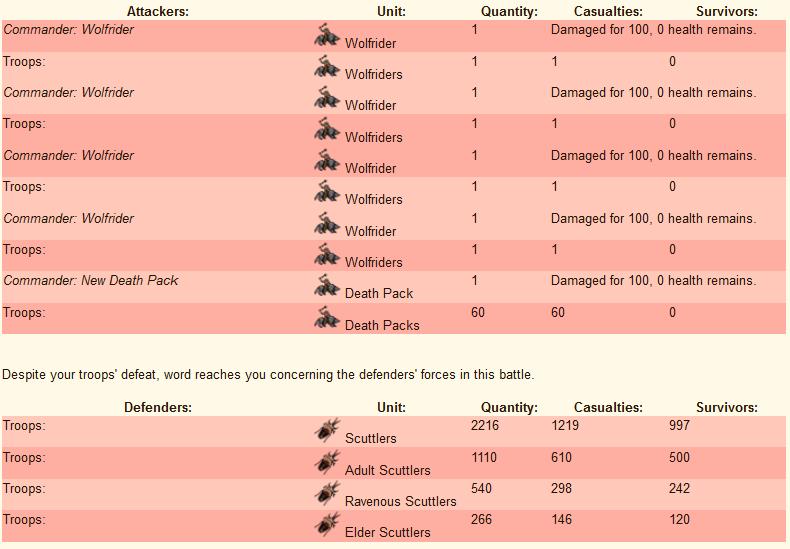 Note: I accidentally deleted the battle report, but you can see the final result in this scout report. 68 kobolds killed to finish off the remaining scuttlers.